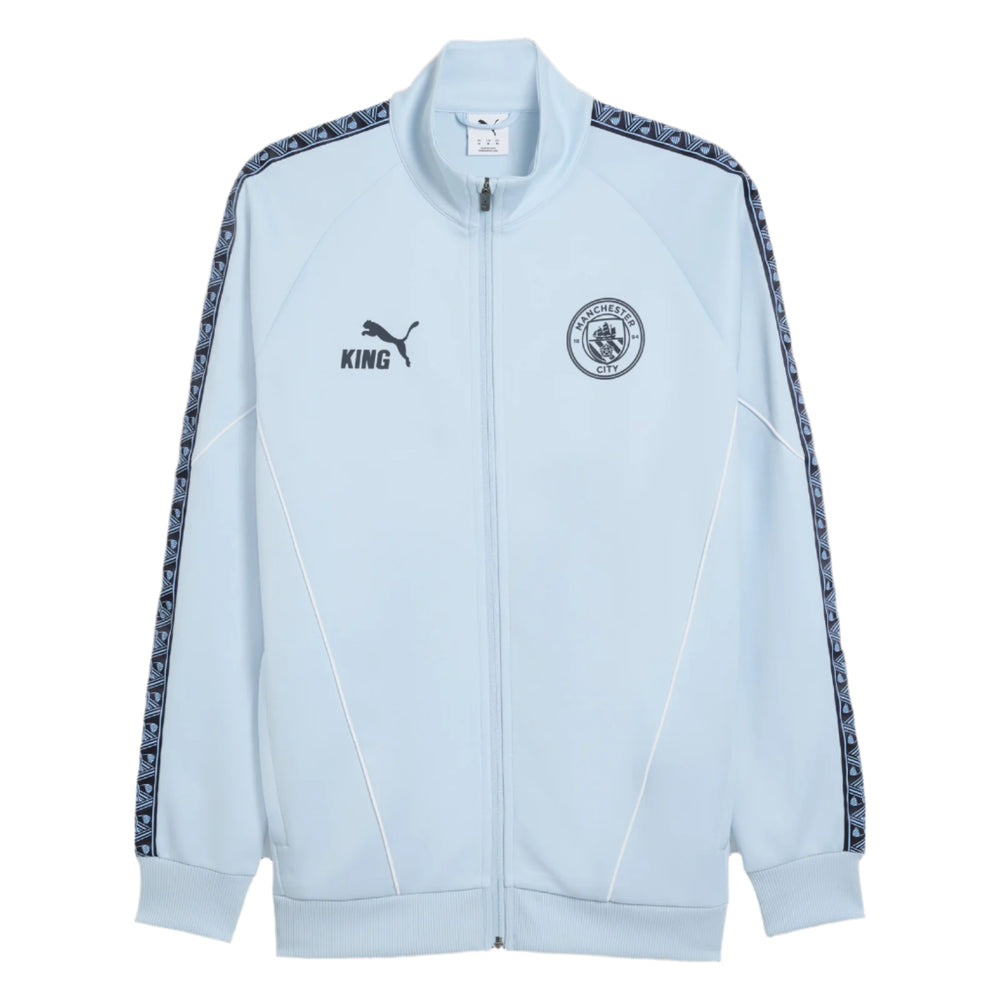 Prepare for the game in style with the Manchester City Pre-Match KING Anthem Jacket. Designed for comfort and freedom of movement with a regular fit and raglan cut, this jacket features the Manchester City crest and PUMA KING logo. The rubber print on the sleeves adds a bold touch, making it the perfect pre-match layer for dedicated fans.