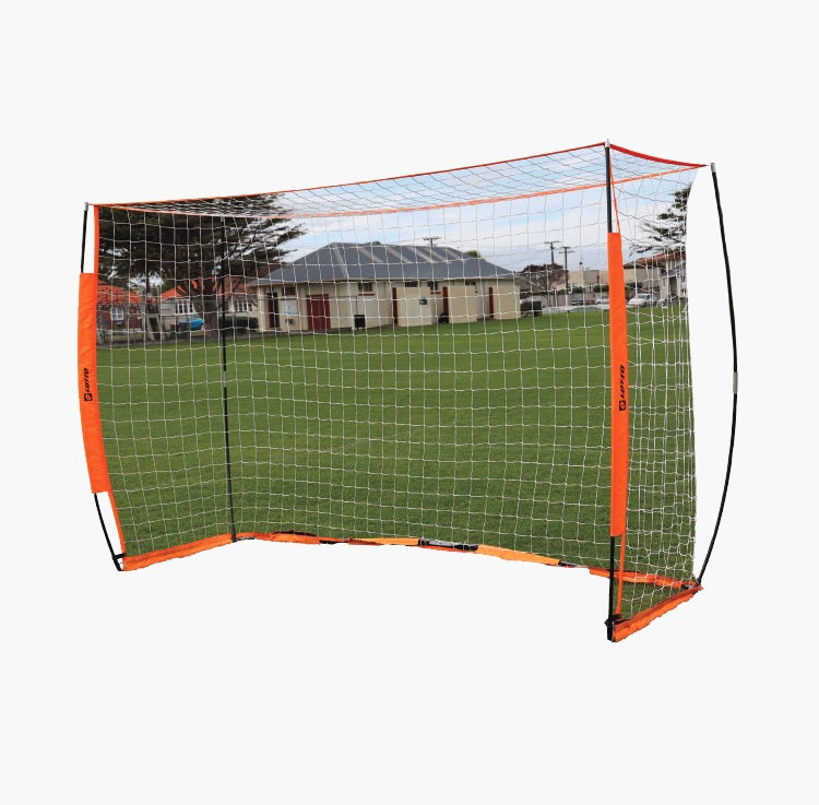 3m x 2m sized goal. easy to assemble. industrial material for crossbar and posts - absorbs everything that can be kicked at it!