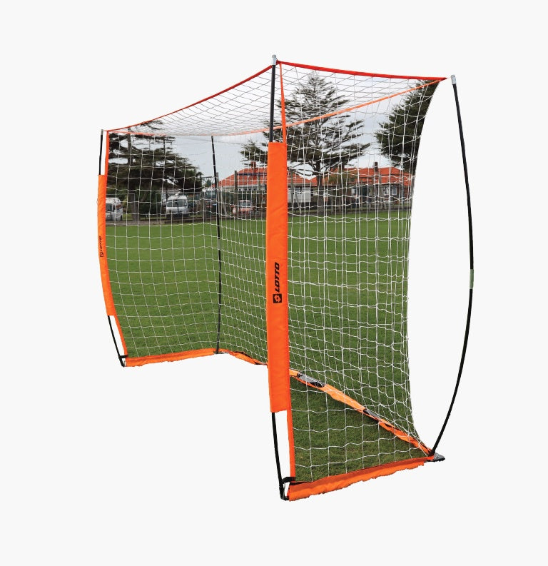 5m x 2m sized goal. easy to assemble. industrial material for crossbar and posts - absorbs everything that can be kicked at it!