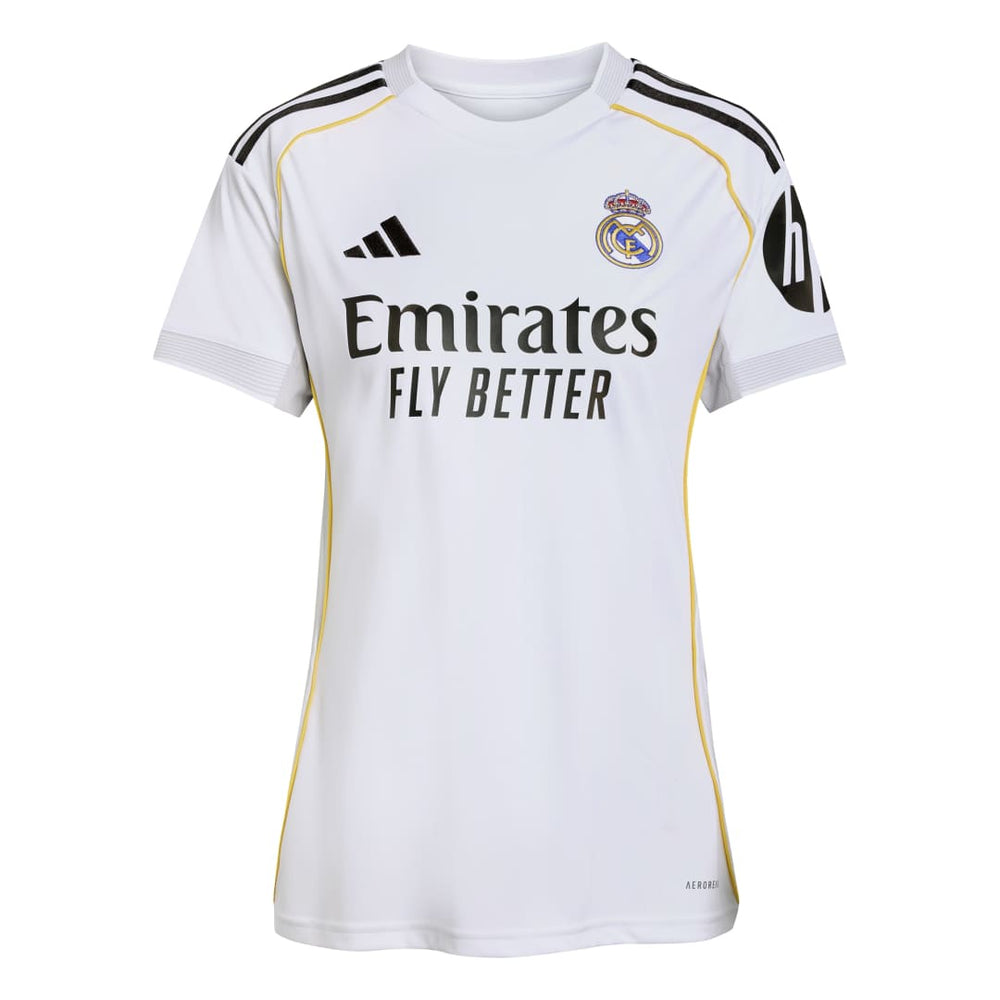 As Real Madrid's world-famous stadium enters a brand-new era, this adidas away football jersey pays tribute to magical nights at the Santiago Bernabéu. Its moiré effect print and silver metallic details combine to mimic the gleaming facade of the renovated arena. Moisture-managing AEROREADY ensures fans feel home comforts when they're on the road with their team.
