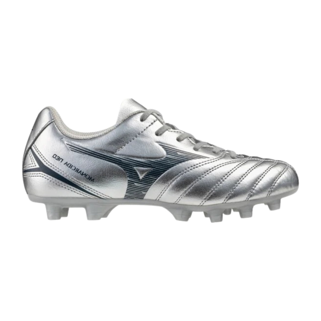 The Mizuno Monarcida Neo III Select Jr FG is designed to deliver comfort, durability, and a forgiving fit for junior footballers of all levels. Built with a hard-wearing synthetic leather upper, this boot offers a soft feel on the ball while standing up to regular training and match play. A slightly more generous fit makes it a great option for growing feet or players who prefer extra comfort, while the lightweight TPU outsole and stud configuration provide dependable traction on firm natural grass. A reliable, no-nonsense football boot that lets young players focus on enjoying the game and building confidence.