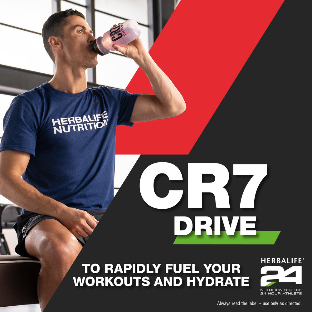 Co-developed with Cristiano Ronaldo, CR7 Drive has been developed to rapidly fuel your workouts and enhance hydration. With natural flavours and colours, Herbalife24 CR7 Drive is a modern sports drink, light tasting and formulated to fuel the drive in all of us.